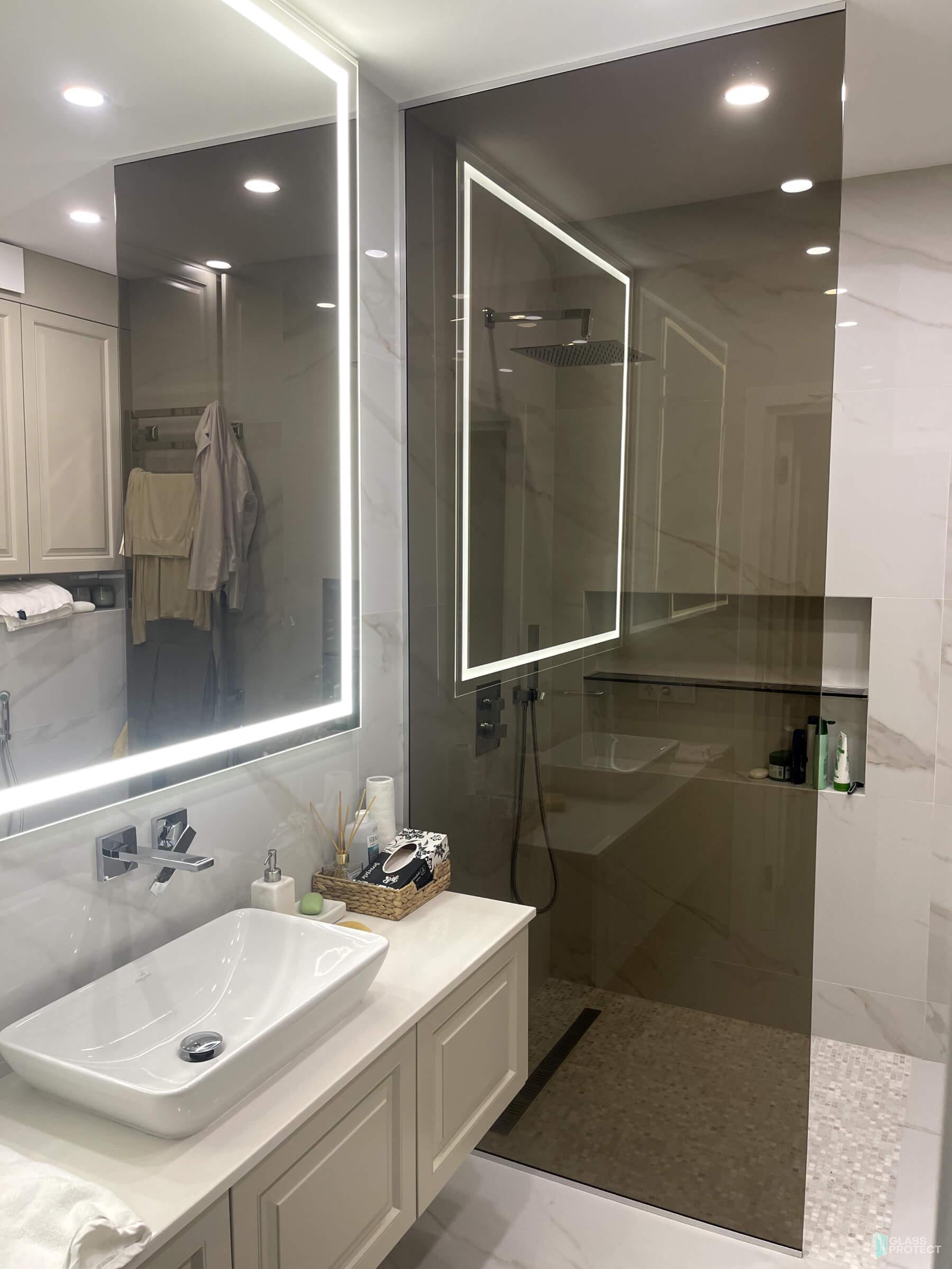 Мы выполняем заказные душевые кабины разных форм, такие как прямоугольные, трапециевидные или в линию. Вся используемая стеклянная поверхность в наших душевых кабинах обладает укрепленной структурой для обеспечения максимальной безопасности.